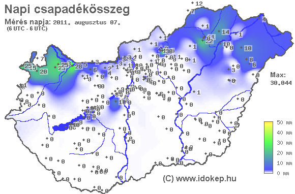 A térkép az előző nap reggel 7 (világidő szerint 6) órától a ma reggel 7 óráig leesett csapadék mennyiségét ábrázolja. A térképek archívuma 2007. február 23-ig visszamenőleg elérhető. A térképre 7:00-tól 8:30-ig lehet beküldeni 24 órás adatot.