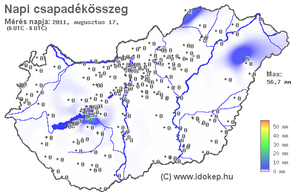 A térkép az előző nap reggel 7 (világidő szerint 6) órától a ma reggel 7 óráig leesett csapadék mennyiségét ábrázolja. A térképek archívuma 2007. február 23-ig visszamenőleg elérhető. A térképre 7:00-tól 8:30-ig lehet beküldeni 24 órás adatot.
