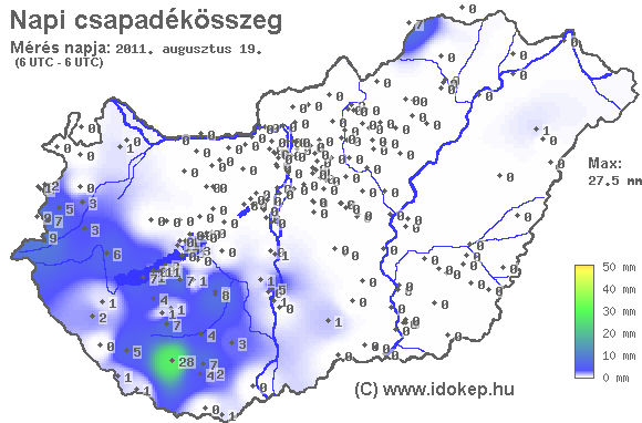 A térkép az előző nap reggel 7 (világidő szerint 6) órától a ma reggel 7 óráig leesett csapadék mennyiségét ábrázolja. A térképek archívuma 2007. február 23-ig visszamenőleg elérhető. A térképre 7:00-tól 8:30-ig lehet beküldeni 24 órás adatot.