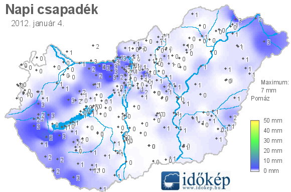 A térkép az előző nap reggel 7 (világidő szerint 6) órától a ma reggel 7 óráig leesett csapadék mennyiségét ábrázolja. A térképek archívuma 2007. február 23-ig visszamenőleg elérhető. A térképre 7:00-tól 8:30-ig lehet beküldeni 24 órás adatot.
