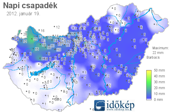 A térkép az előző nap reggel 7 (világidő szerint 6) órától a ma reggel 7 óráig leesett csapadék mennyiségét ábrázolja. A térképek archívuma 2007. február 23-ig visszamenőleg elérhető. A térképre 7:00-tól 8:30-ig lehet beküldeni 24 órás adatot.