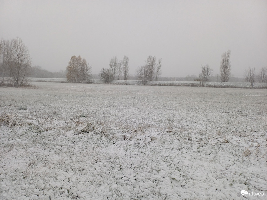 Erős apróbbszemű havazás, erős szél, -3 fok.