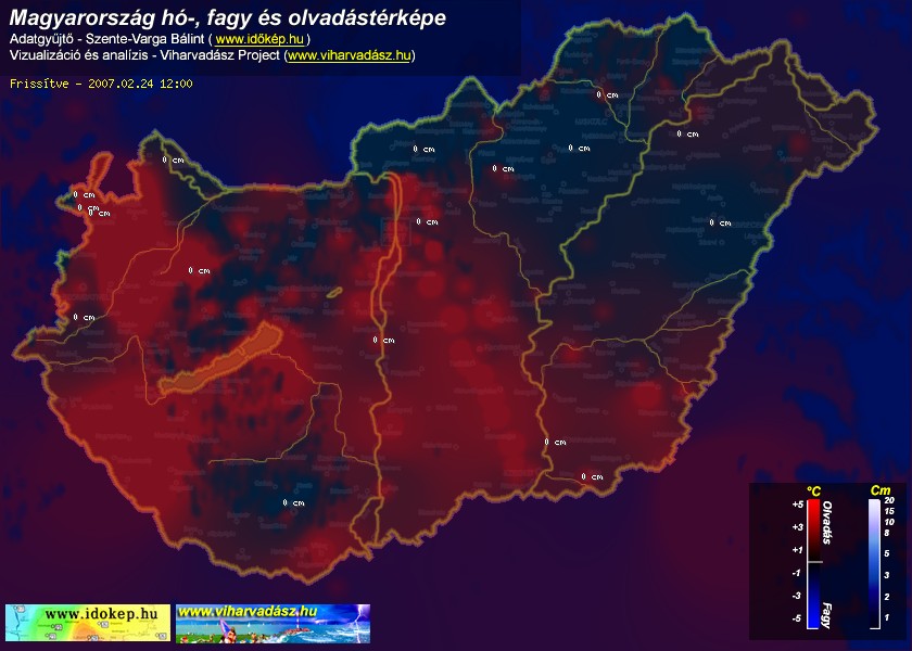 Hótérképünkön hazánk síterepei mellett észlelőink által jelzett hóvastagság adatok is megjelennek. A téli hidegben így láthatjuk, hova érdemes síelni, szánkózni indulni, merre kell óvatosan közlekedni, hol csúszósak az utak. A térkép az elmúlt 12 órában, az Észlelési oldalon leadott észlelések, valamint a sielok.hu adatai alapján készül.