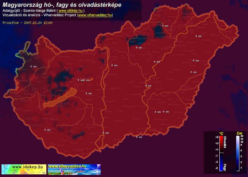 Hótérképünkön hazánk síterepei mellett észlelőink által jelzett hóvastagság adatok is megjelennek. A téli hidegben így láthatjuk, hova érdemes síelni, szánkózni indulni, merre kell óvatosan közlekedni, hol csúszósak az utak. A térkép az elmúlt 12 órában, az Észlelési oldalon leadott észlelések, valamint a sielok.hu adatai alapján készül.