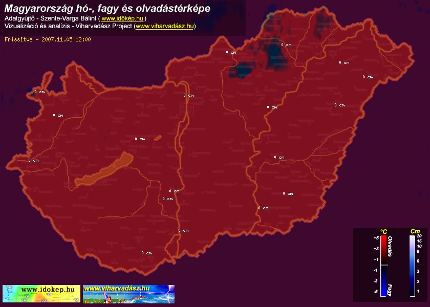 Hótérképünkön hazánk síterepei mellett észlelőink által jelzett hóvastagság adatok is megjelennek. A téli hidegben így láthatjuk, hova érdemes síelni, szánkózni indulni, merre kell óvatosan közlekedni, hol csúszósak az utak. A térkép az elmúlt 12 órában, az Észlelési oldalon leadott észlelések, valamint a sielok.hu adatai alapján készül.