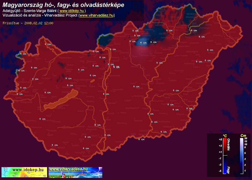 Hótérképünkön hazánk síterepei mellett észlelőink által jelzett hóvastagság adatok is megjelennek. A téli hidegben így láthatjuk, hova érdemes síelni, szánkózni indulni, merre kell óvatosan közlekedni, hol csúszósak az utak. A térkép az elmúlt 12 órában, az Észlelési oldalon leadott észlelések, valamint a sielok.hu adatai alapján készül.