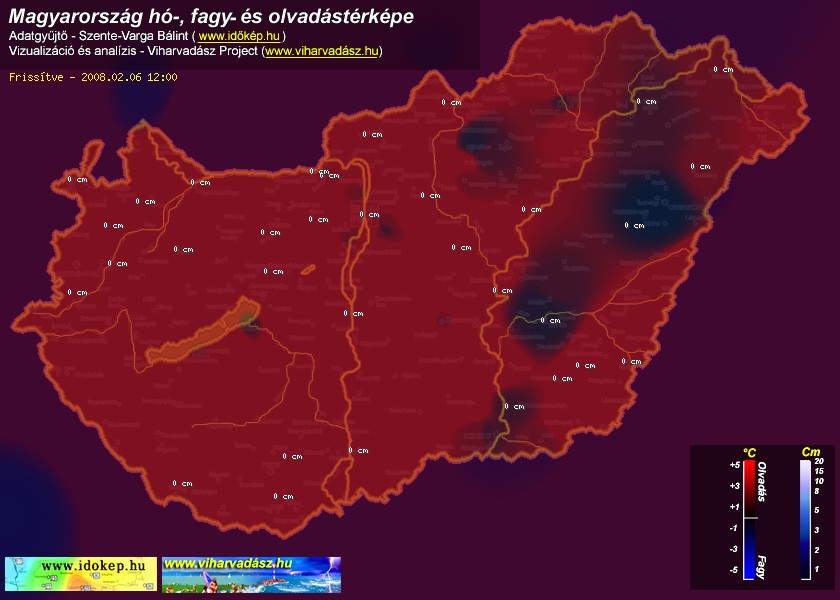 Hótérképünkön hazánk síterepei mellett észlelőink által jelzett hóvastagság adatok is