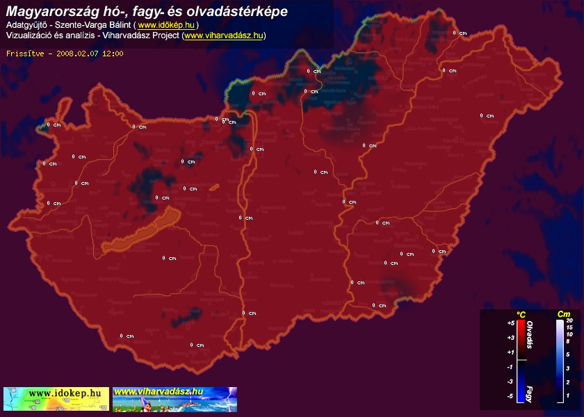 Hótérképünkön hazánk síterepei mellett észlelőink által jelzett hóvastagság adatok is