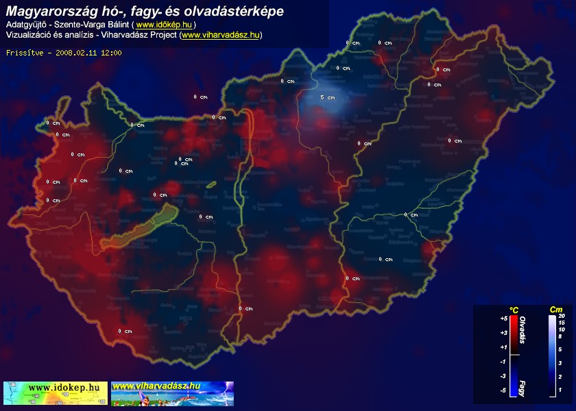 Hótérképünkön hazánk síterepei mellett észlelőink által jelzett hóvastagság adatok is megjelennek. A téli hidegben így láthatjuk, hova érdemes síelni, szánkózni indulni, merre kell óvatosan közlekedni, hol csúszósak az utak. A térkép az elmúlt 12 órában, az Észlelési oldalon leadott észlelések, valamint a sielok.hu adatai alapján készül.