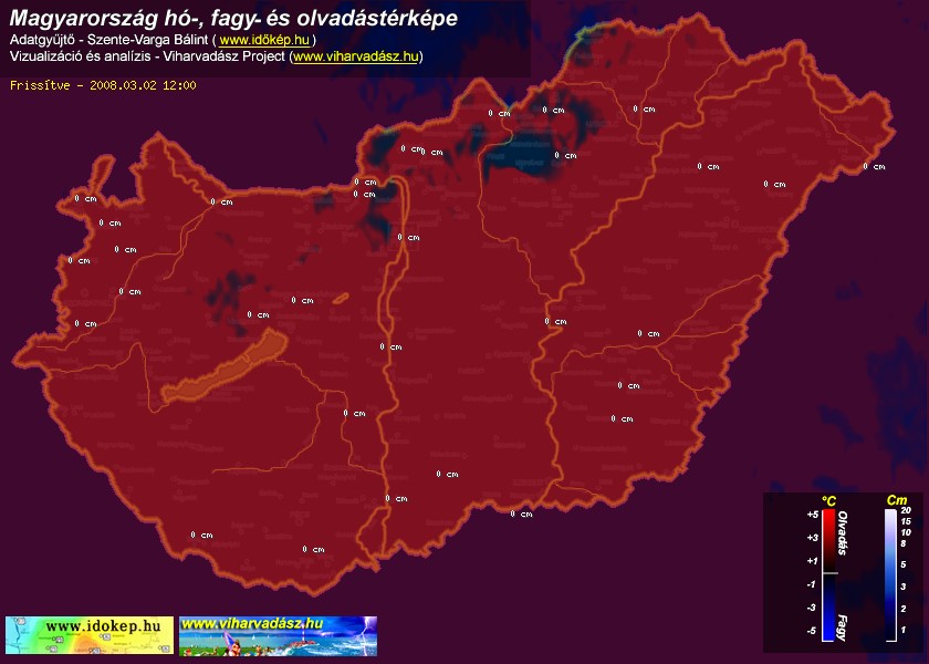 Hótérképünkön hazánk síterepei mellett észlelőink által jelzett hóvastagság adatok is megjelennek. A téli hidegben így láthatjuk, hova érdemes síelni, szánkózni indulni, merre kell óvatosan közlekedni, hol csúszósak az utak. A térkép az elmúlt 12 órában, az Észlelési oldalon leadott észlelések, valamint a sielok.hu adatai alapján készül.