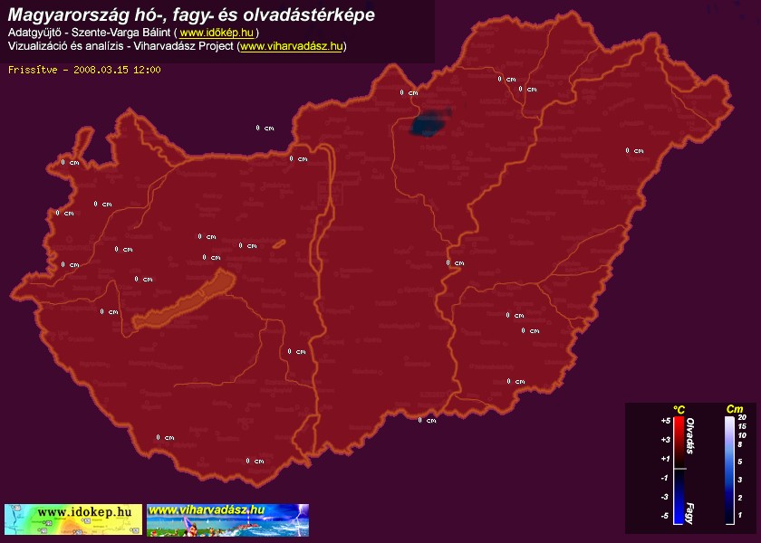 Hótérképünkön hazánk síterepei mellett észlelőink által jelzett hóvastagság adatok is megjelennek. A téli hidegben így láthatjuk, hova érdemes síelni, szánkózni indulni, merre kell óvatosan közlekedni, hol csúszósak az utak. A térkép az elmúlt 12 órában, az Észlelési oldalon leadott észlelések, valamint a sielok.hu adatai alapján készül.