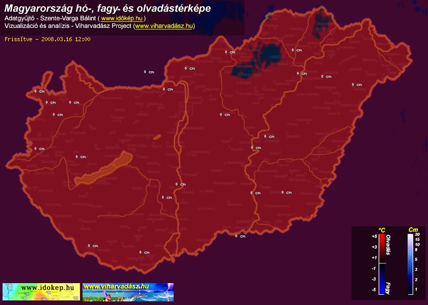 Hótérképünkön hazánk síterepei mellett észlelőink által jelzett hóvastagság adatok is megjelennek. A téli hidegben így láthatjuk, hova érdemes síelni, szánkózni indulni, merre kell óvatosan közlekedni, hol csúszósak az utak. A térkép az elmúlt 12 órában, az Észlelési oldalon leadott észlelések, valamint a sielok.hu adatai alapján készül.