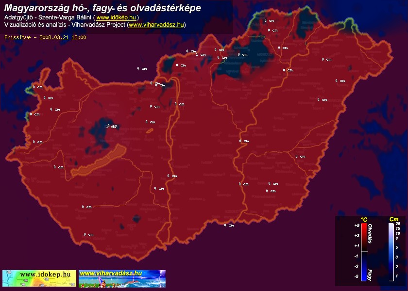 Hótérképünkön hazánk síterepei mellett észlelőink által jelzett hóvastagság adatok is megjelennek. A téli hidegben így láthatjuk, hova érdemes síelni, szánkózni indulni, merre kell óvatosan közlekedni, hol csúszósak az utak. A térkép az elmúlt 12 órában, az Észlelési oldalon leadott észlelések, valamint a sielok.hu adatai alapján készül.