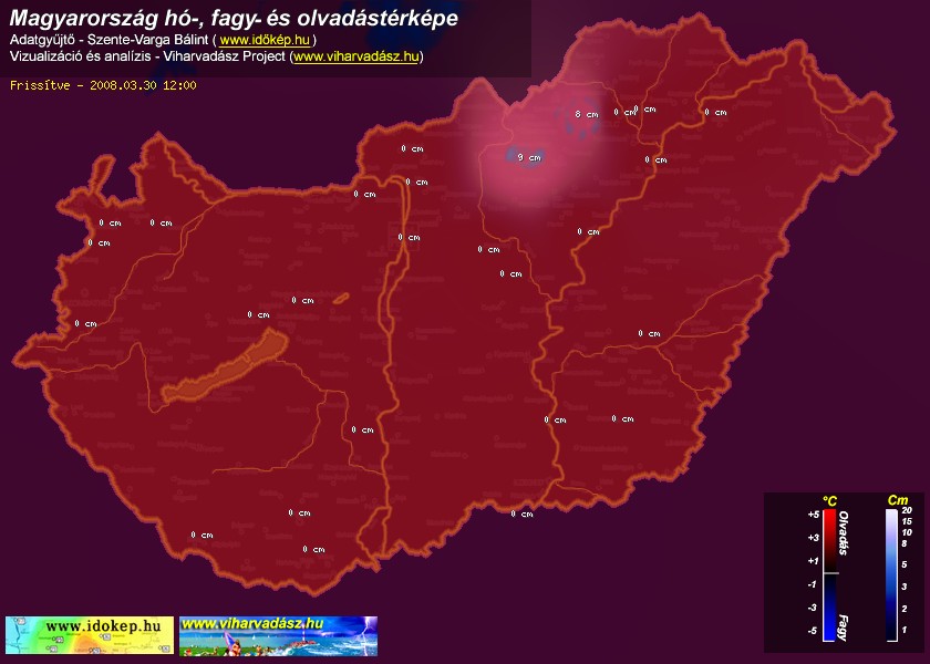 Hótérképünkön hazánk síterepei mellett észlelőink által jelzett hóvastagság adatok is megjelennek. A téli hidegben így láthatjuk, hova érdemes síelni, szánkózni indulni, merre kell óvatosan közlekedni, hol csúszósak az utak. A térkép az elmúlt 12 órában, az Észlelési oldalon leadott észlelések, valamint a sielok.hu adatai alapján készül.