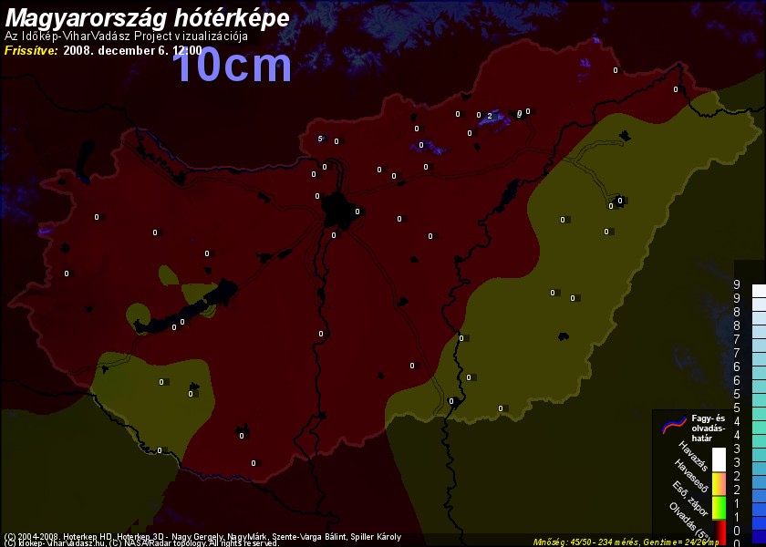 Hótérképünkön hazánk síterepei mellett észlelőink által jelzett hóvastagság adatok is megjelennek. A téli hidegben így láthatjuk, hova érdemes síelni, szánkózni indulni, merre kell óvatosan közlekedni, hol csúszósak az utak. A térkép az elmúlt 12 órában, az Észlelési oldalon leadott észlelések, valamint a sielok.hu adatai alapján készül.