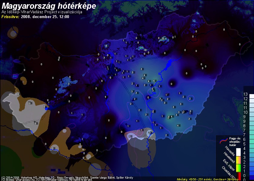 Hótérképünkön hazánk síterepei mellett észlelőink által jelzett hóvastagság adatok is megjelennek. A téli hidegben így láthatjuk, hova érdemes síelni, szánkózni indulni, merre kell óvatosan közlekedni, hol csúszósak az utak. A térkép az elmúlt 12 órában, az Észlelési oldalon leadott észlelések, valamint a sielok.hu adatai alapján készül.