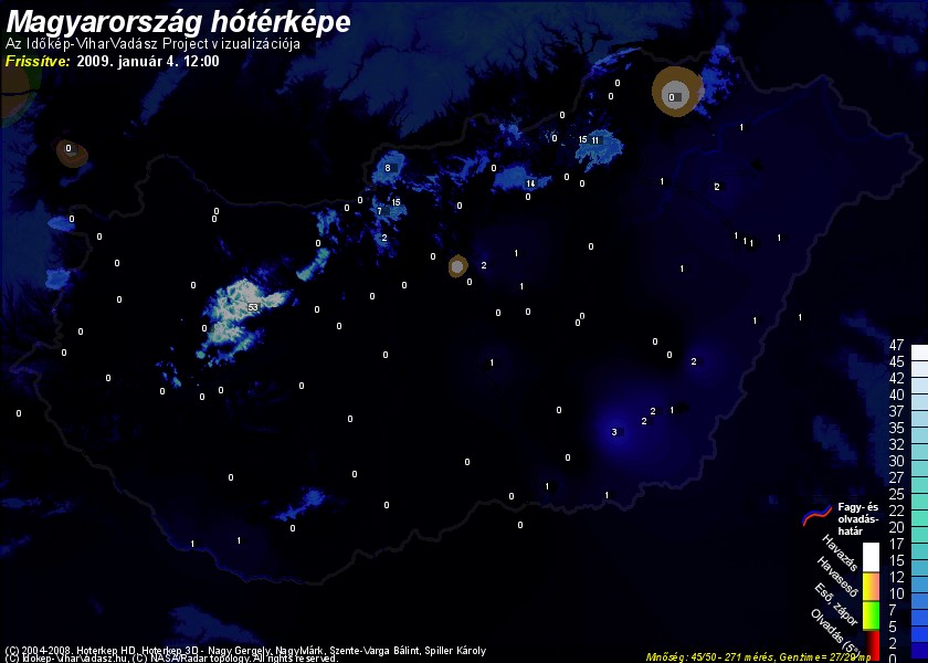 Hótérképünkön hazánk síterepei mellett észlelőink által jelzett hóvastagság adatok is megjelennek. A téli hidegben így láthatjuk, hova érdemes síelni, szánkózni indulni, merre kell óvatosan közlekedni, hol csúszósak az utak. A térkép az elmúlt 12 órában, az Észlelési oldalon leadott észlelések, valamint a sielok.hu adatai alapján készül.
