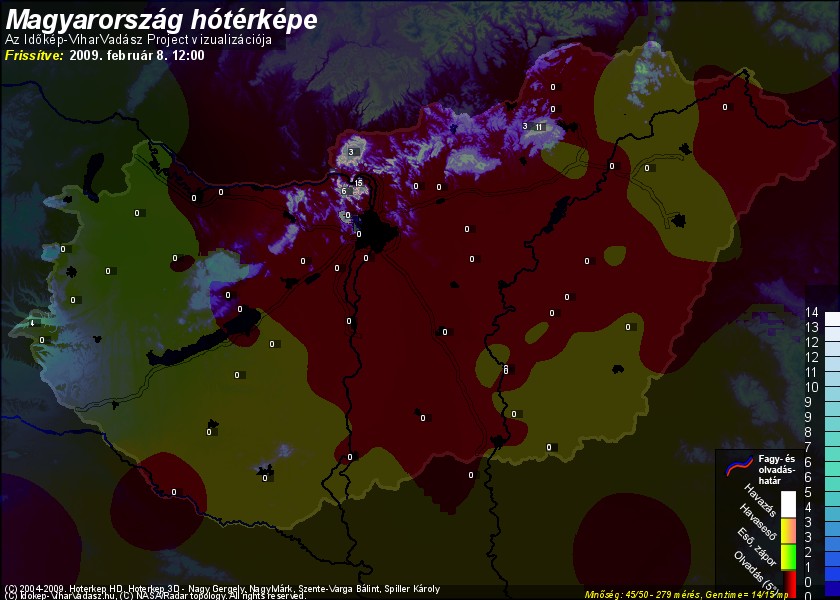 Hótérképünkön hazánk síterepei mellett észlelőink által jelzett hóvastagság adatok is