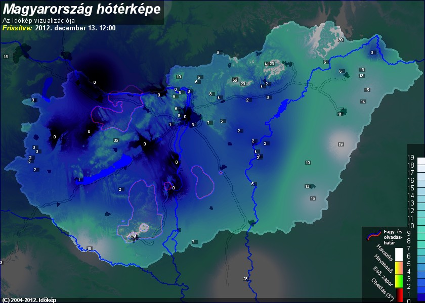 Hótérképünkön hazánk síterepei mellett észlelőink által jelzett hóvastagság adatok is
