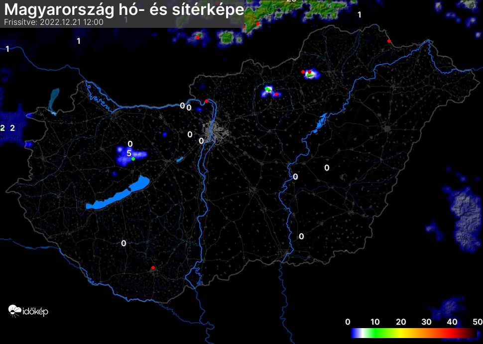 Hótérképünkön hazánk síterepei mellett észlelőink által jelzett hóvastagság adatok is