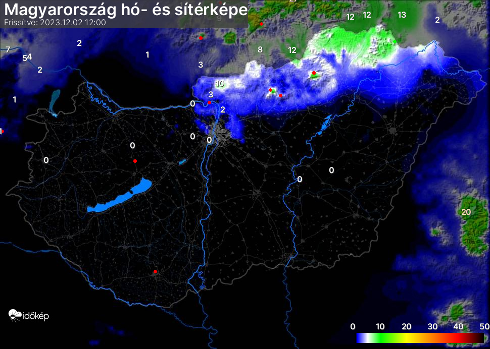 Hótérképünkön hazánk síterepei mellett észlelőink által jelzett hóvastagság adatok is