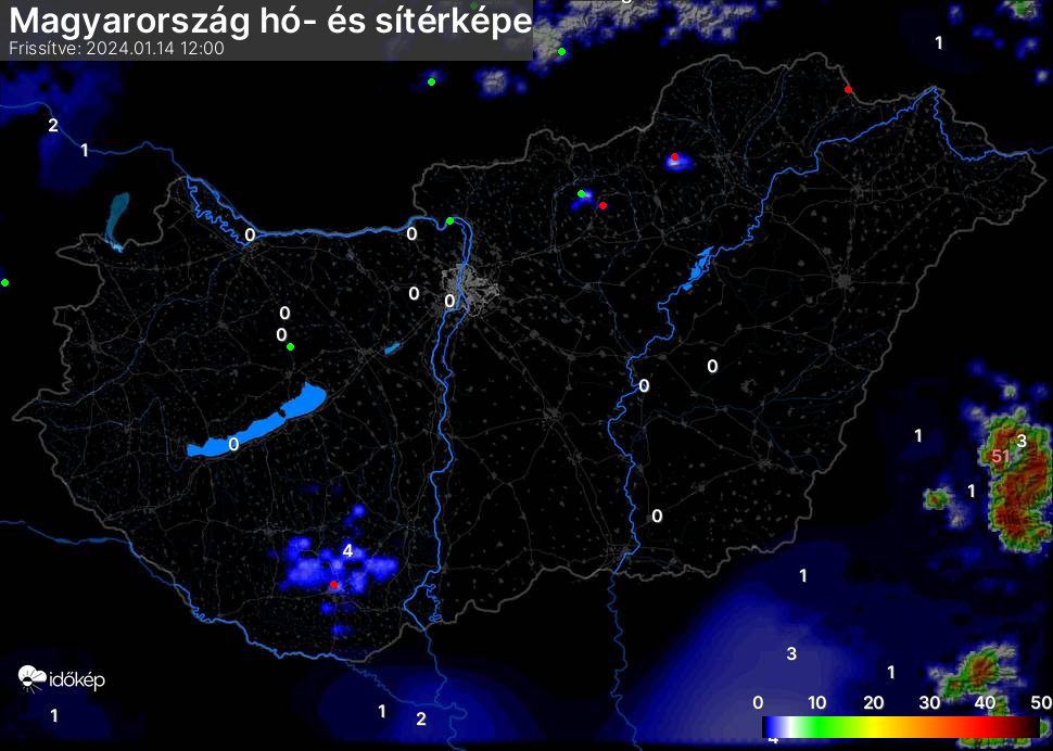 Hótérképünkön hazánk síterepei mellett észlelőink által jelzett hóvastagság adatok is megjelennek. A téli hidegben így láthatjuk, hova érdemes síelni, szánkózni indulni, merre kell óvatosan közlekedni, hol csúszósak az utak. A térkép az elmúlt 12 órában, az Észlelési oldalon leadott észlelések, valamint a sielok.hu adatai alapján készül.