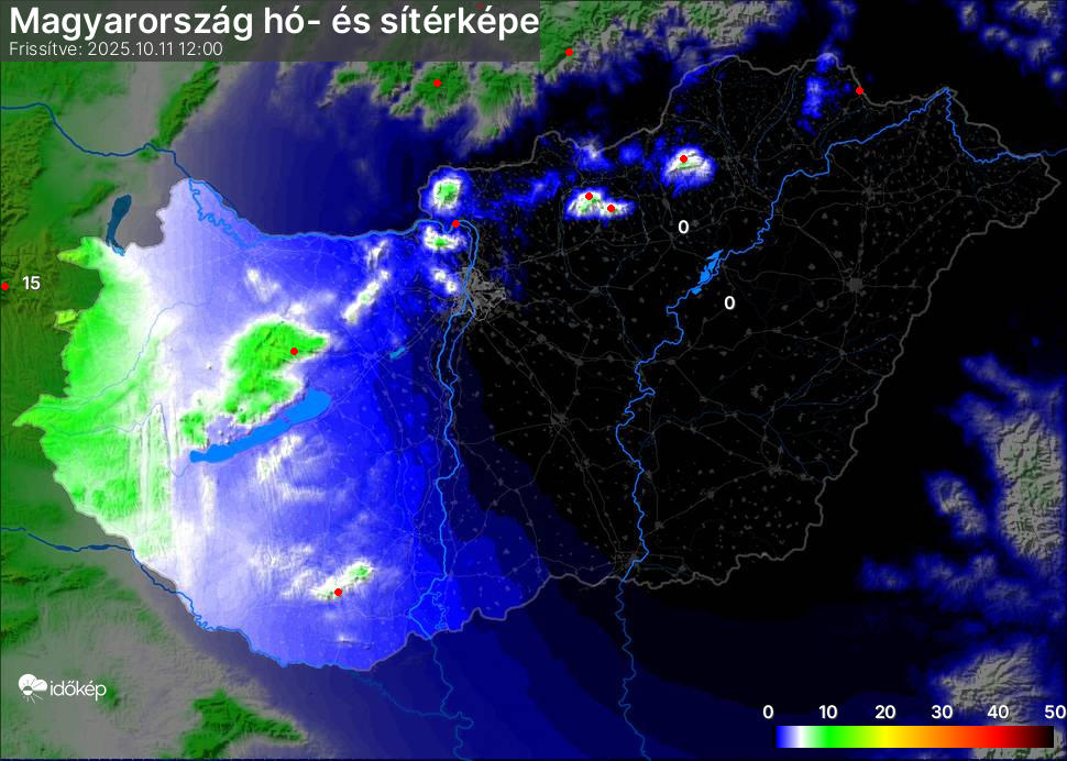 Hótérképünkön hazánk síterepei mellett észlelőink által jelzett hóvastagság adatok is