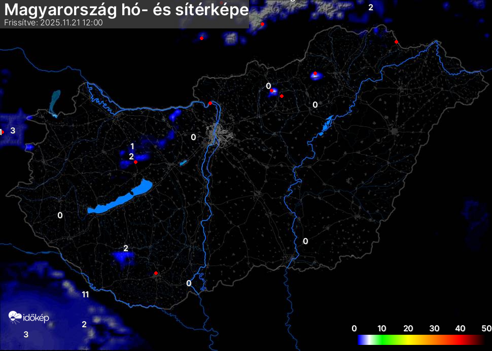 Hótérképünkön hazánk síterepei mellett észlelőink által jelzett hóvastagság adatok is