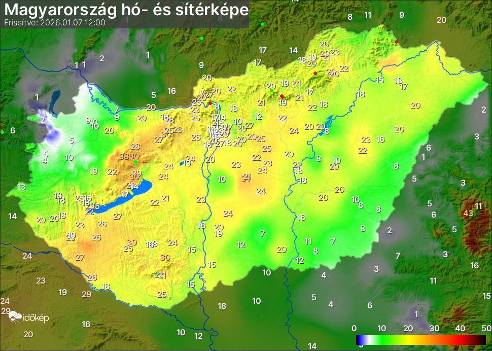 Hótérképünkön hazánk síterepei mellett észlelőink által jelzett hóvastagság adatok is megjelennek. A téli hidegben így láthatjuk, hova érdemes síelni, szánkózni indulni, merre kell óvatosan közlekedni, hol csúszósak az utak. A térkép az elmúlt 12 órában, az Észlelési oldalon leadott észlelések, valamint a sielok.hu adatai alapján készül.