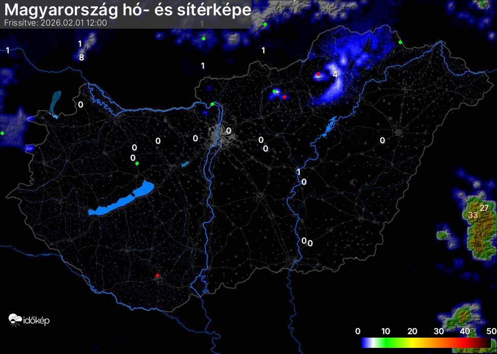 Hótérképünkön hazánk síterepei mellett észlelőink által jelzett hóvastagság adatok is megjelennek. A téli hidegben így láthatjuk, hova érdemes síelni, szánkózni indulni, merre kell óvatosan közlekedni, hol csúszósak az utak. A térkép az elmúlt 12 órában, az Észlelési oldalon leadott észlelések, valamint a sielok.hu adatai alapján készül.