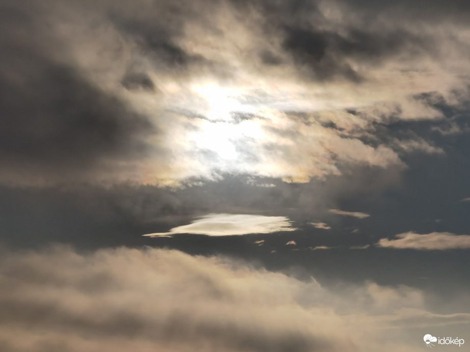 Különleges szépségű fénylő felhő naplemente előtt