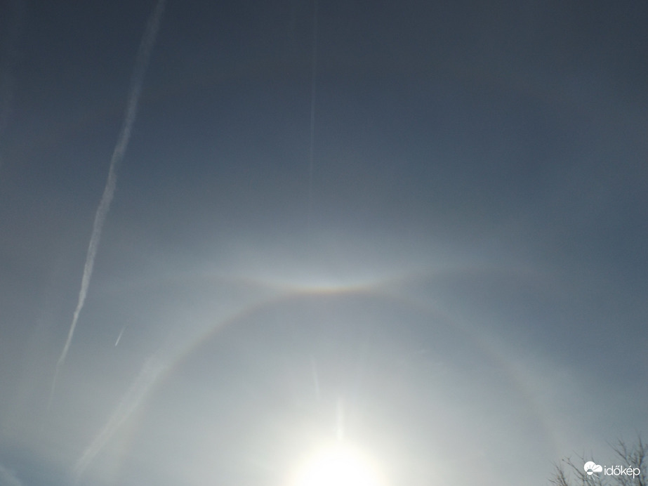 Ma készült, Zalabér, délelőtt 10.30. Egy rendkivűl fényes felső érintő naphalóval, + egy igen halvány felső oldaliv (Supralateral arc)
