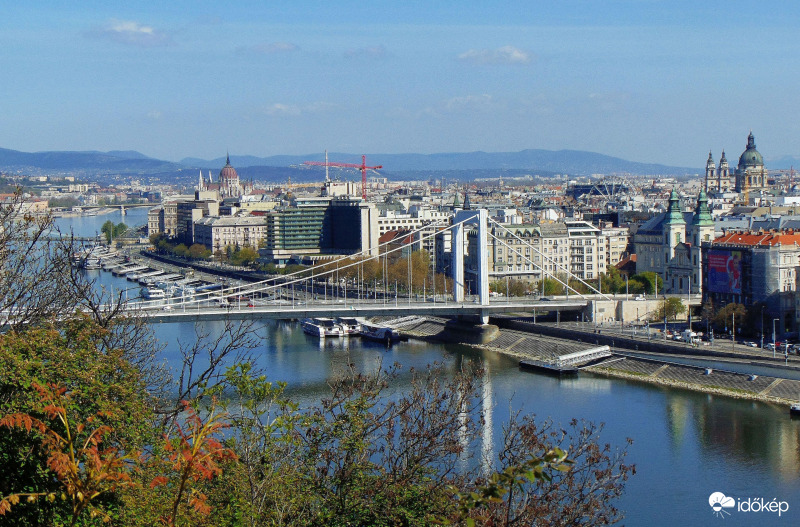 Tiszta időben jól látszanak a Budai hegyek vonulatai..