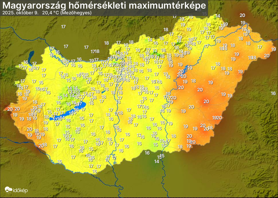 A maximumtérképen kirajzolódik az adott napon mért legmagasabb hőmérsékletek térbeli eloszlása. Az adott nap hőmérsékleti maximumát télen reggel és este 7 óra, nyáron reggel és este 8 óra között mért legmagasabb értékkel adjuk meg. Adatbeküldés: következő nap reggel 4 óráig.