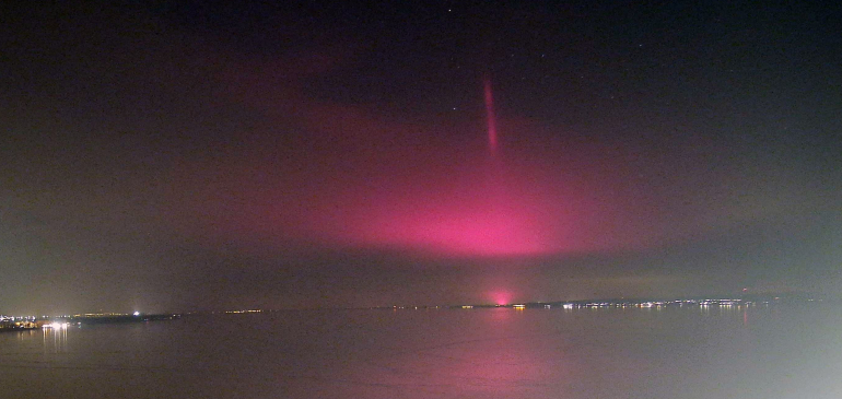 Rózsaszín fényoszlop ragyogott a Balaton felett