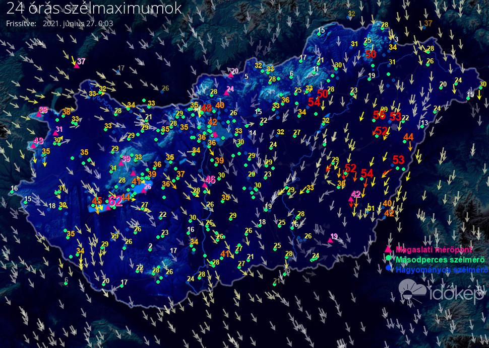 24 órás szélmaximum