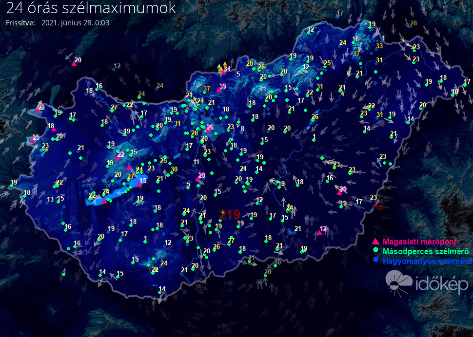 24 órás szélmaximum