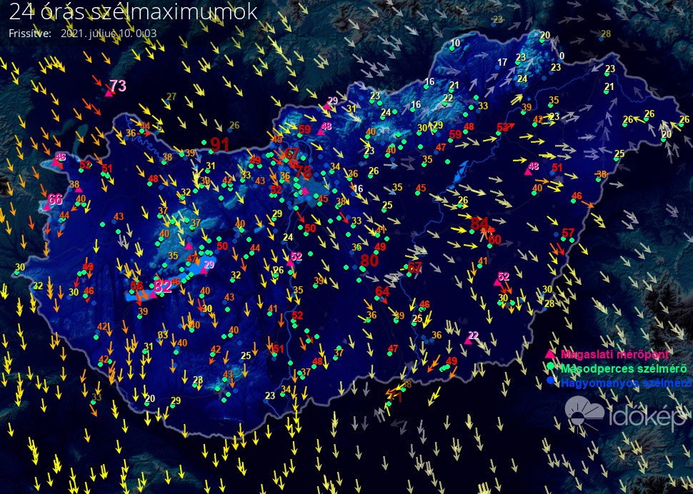 24 órás szélmaximum