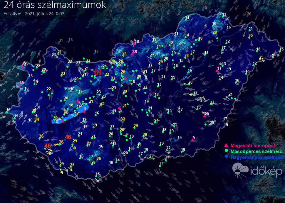 24 órás szélmaximum