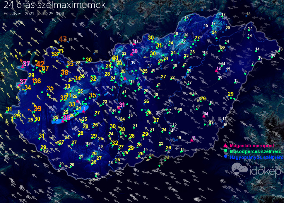24 órás szélmaximum
