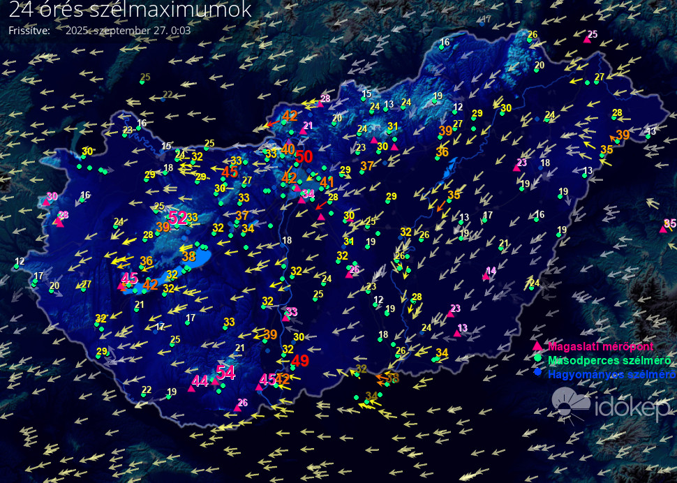 24 órás szélmaximum