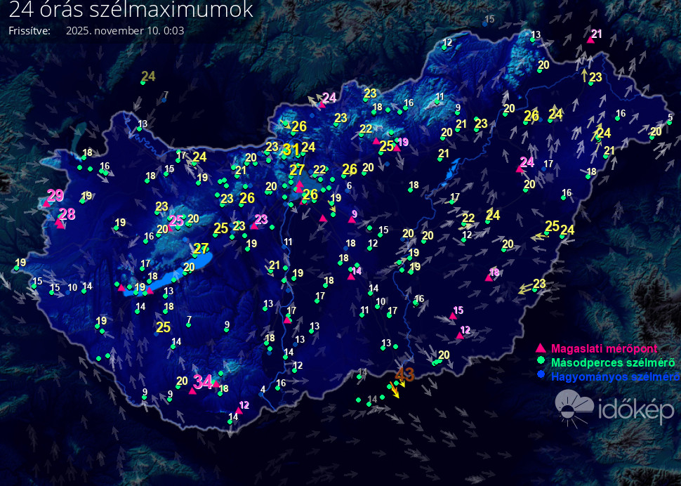 24 órás szélmaximum