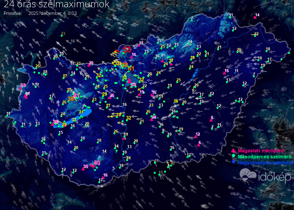 24 órás szélmaximum