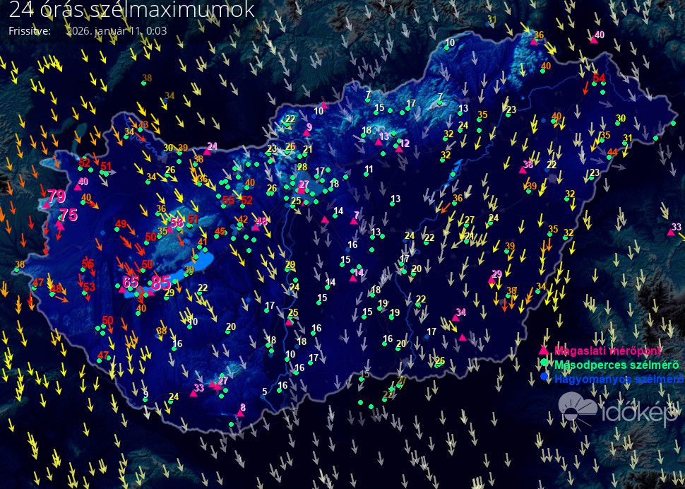 24 órás szélmaximum
