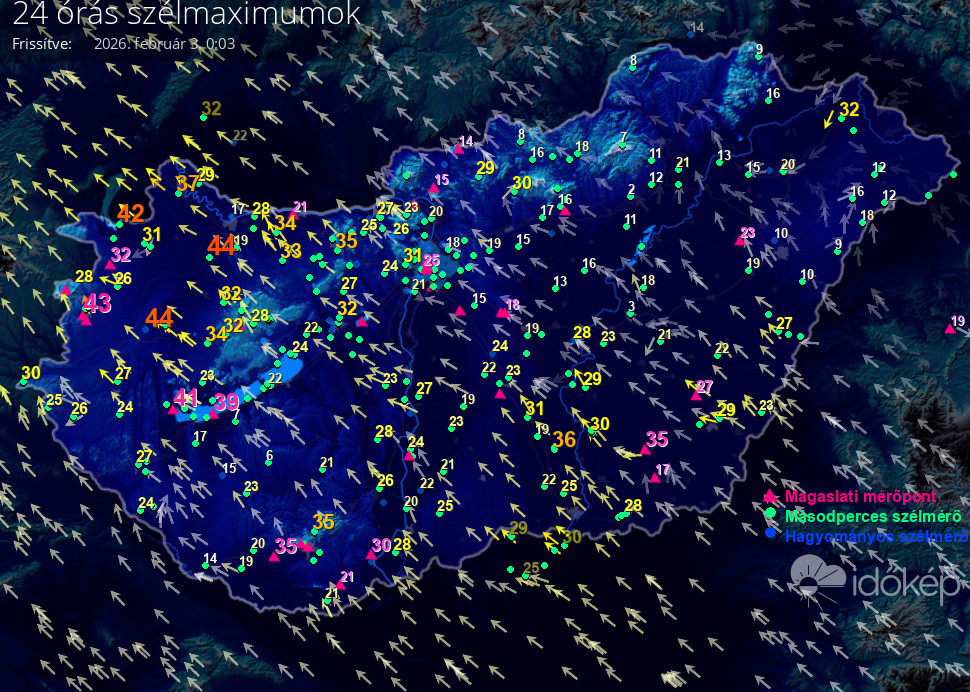 24 órás szélmaximum